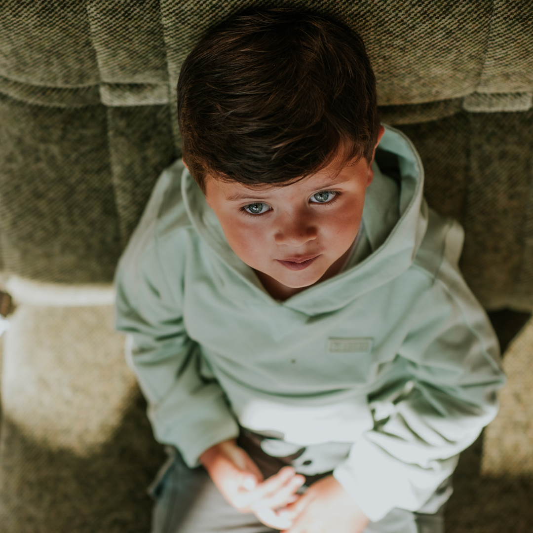 Dieser Koko Noko Hoodie in zartem Grün ist ein Favorit, den man jeden Tag aus dem Schrank holt. Der Jungenpullover mit Kapuze hat einen coolen Look und eine schöne Passform, ideal für aktive Tage. In den großen Kängurutaschen ist genug Platz für gefundene Zweige, Steine oder einfach nur warme Hände. Der sanfte Grünton lässt sich leicht mit Jeans oder Jogginghosen kombinieren. Der Jungen-Sweater mit Kapuze ist aus Bio-Baumwolle mit Stretchanteil gefertigt. Das fühlt sich nicht nur weich auf der Haut an, sondern ist auch atmungsaktiv und angenehm zu tragen. Kombinieren Sie diesen Hoodie mühelos mit anderen Basics aus der Koko Noko NOOS-Kollektion.