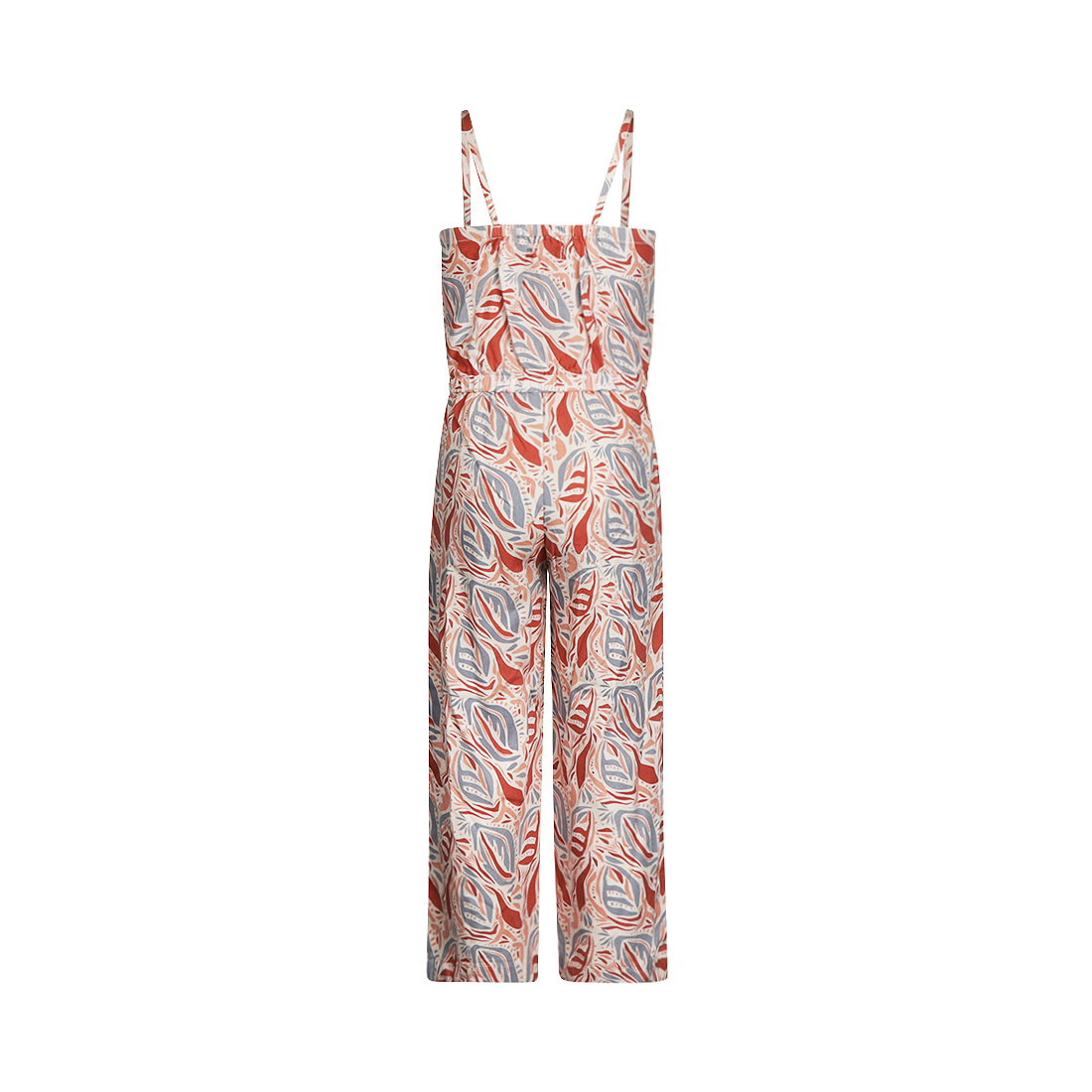Dieser Koko Noko Jumpsuit für Mädchen ist eine fröhliche und luftige Wahl für den Sommer. Der ärmellose Jumpsuit besticht durch sein mehrfarbiges Design mit einem lebendigen Blätterprint in Rot- und Blaugrautönen. Er ist aus 100 % Viskose gefertigt und fühlt sich wunderbar weich und geschmeidig an. Der elastische Bund mit Kordelzug sorgt für eine bequeme Passform und bietet viel Bewegungsfreiheit – perfekt für sonnige Tage.
