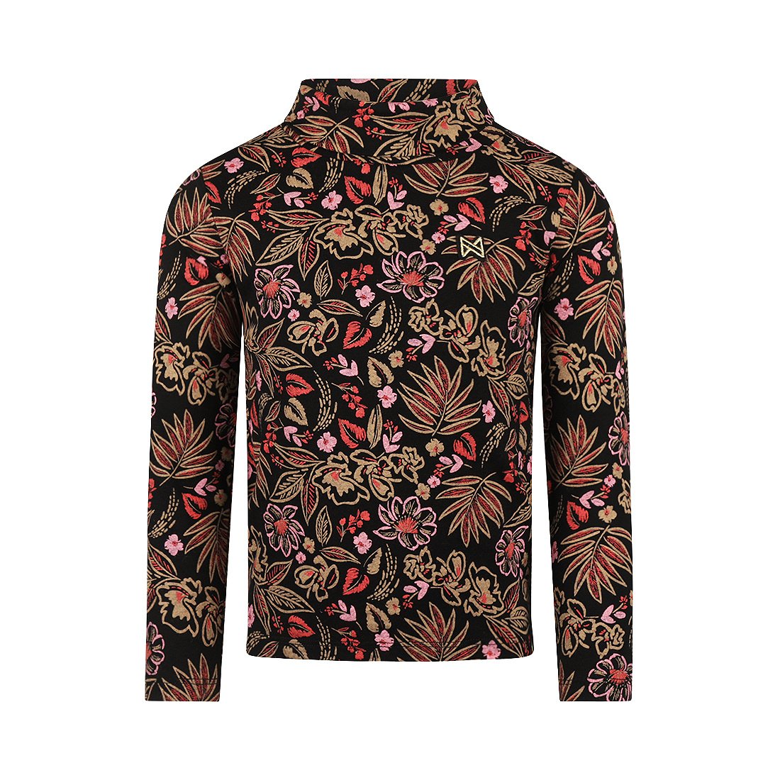 Koko Noko Mädchen Langarmshirt Rolkragen, schwarz mit Blumen