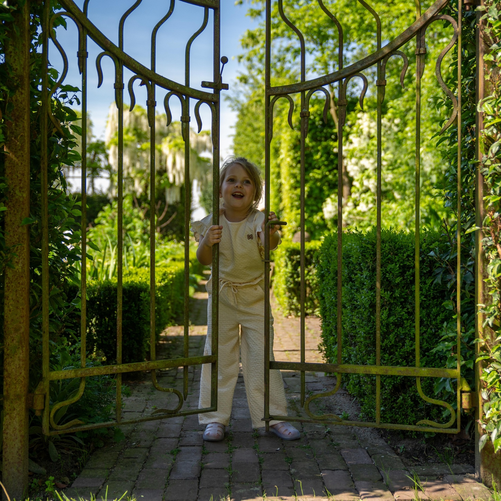 Mit diesem süßen Set ist Ihr Mädchen sofort bereit für den Tag. Das Koko Noko Set in Off-White besteht aus einem Shirt und einer Hose mit weitem Bein und zeichnet sich durch eine schöne Struktur im Stoff aus. Es hat fröhliche Rüschen an den Ärmeln und in den Größen bis 86 Druckknöpfe an der Schulter. Die weiten Hosenbeine haben praktische Taschen und einen dekorativen Kordelzug.