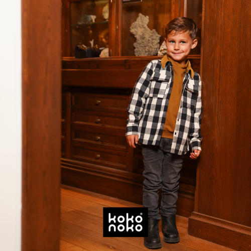 Koko Noko boys vest Nero grey. The vest has a hood and a zipper. The cardigan is dark grey and it is made of biological cotton.