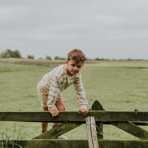 This Koko Noko sweater for boys is an ideal and comfortable layer for slightly cooler summer days and evenings. Featuring a soft beige color with horizontal stripes in a lighter, sand-colored shade, it has a classic yet playful look. Made of 100% cotton, this sweater feels wonderfully soft against the skin and offers optimal comfort. Ribbed cuffs, hem, and hem ensure a comfortable fit. A stylish Koko Noko sweater, perfect for any adventure.
