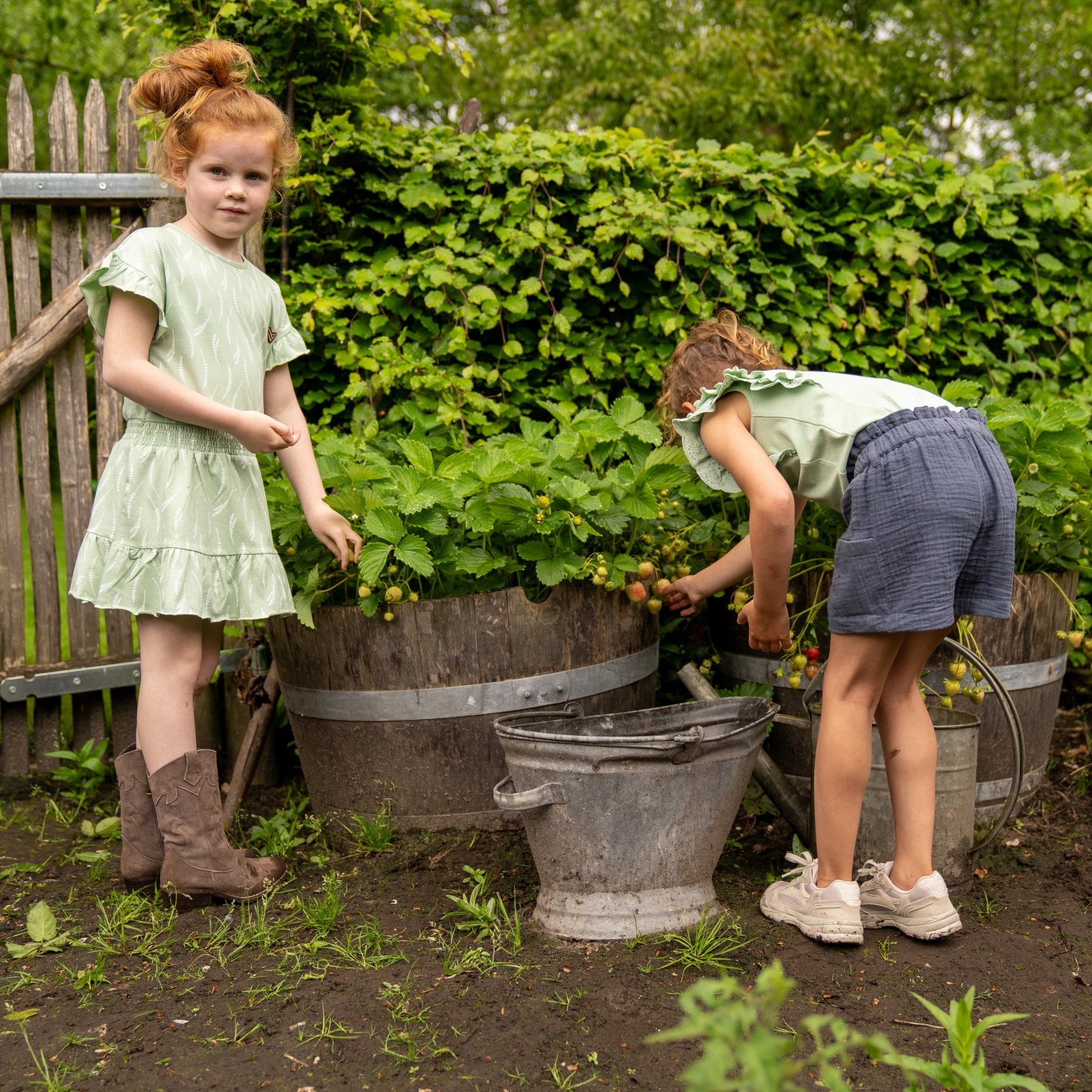 Let your girl shine in this cheerful Koko Noko dress. The short-sleeved dress is soft green in colour with a pretty all-over print. The girls' dress has a flared skirt with elasticated waistband and ruffles at the bottom. Extra nice are the ruffles on the sleeves. Sizes up to 86 feature press-studs on the shoulders.