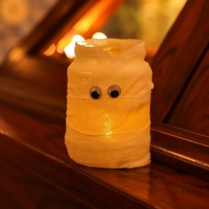 Breng een mysterieuze sfeer in huis met deze griezelige mummie theelichthouder.