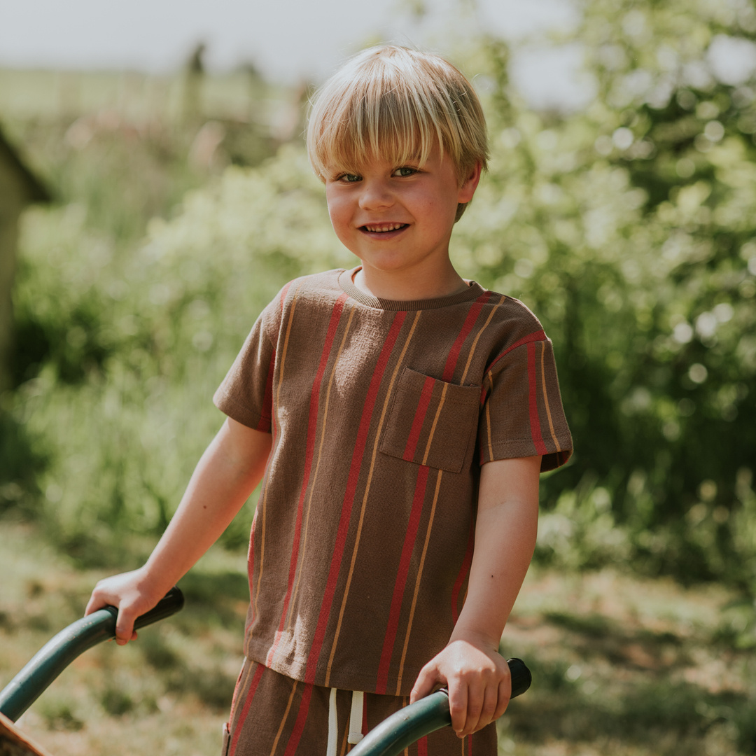 Koko Noko jongens T-shirt donkerbruin gestreept katoen