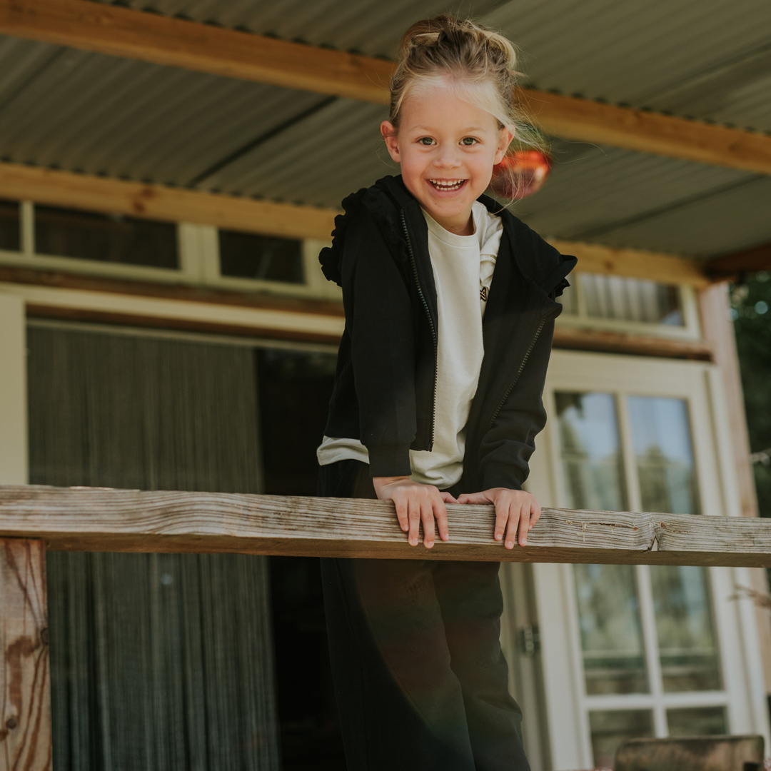 Op zoek naar een zwarte basic die altijd van pas komt? Dit zwarte Koko Noko vest met capuchon en ruffles is een stoere essential voor frisse ochtenden of relaxte middagen. Het meisjes vest is gemaakt van zacht biologisch katoen met stretch, wat zorgt voor een soepele pasvorm en extra bewegingsvrijheid. Dankzij de dropped shoulder heeft het vest een relaxte, iets lossere fit. Combineer het zwarte Koko Noko capuchonvest makkelijk met de bijpassende wide leg joggingbroek of met een jeans voor een alledaagse look.